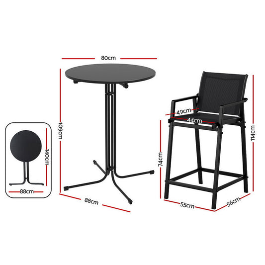 3 Piece Outdoor Bar Set Stools Dining Chairs Table Patio Aluminium Bistro Set Black