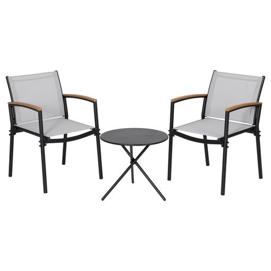 3PC Outdoor Bistro Set Patio Furniture Lounge Setting Table and Chairs Grey