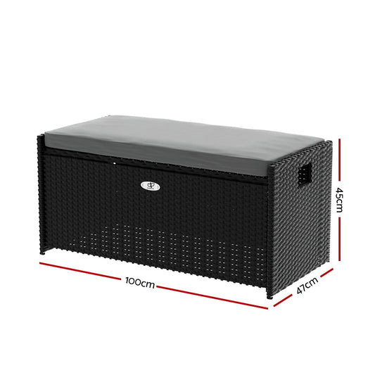 Outdoor Storage Bench Box Wicker Garden Sheds Tools Cushion Patio Furniture - Black