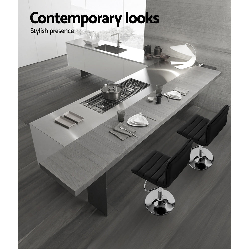 Set of 2 Padded Leather Bar Stools - Black