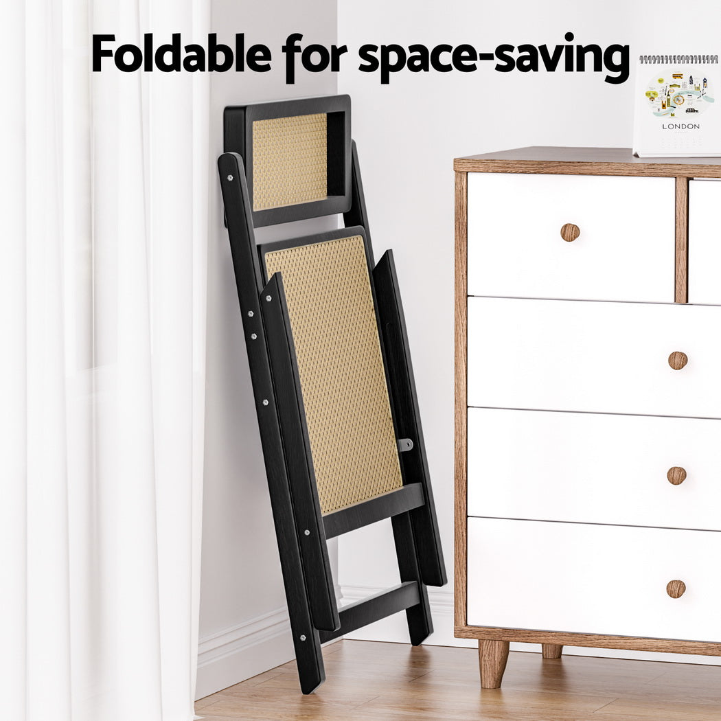 Set of 2 Wooden Rattan Foldable Dining Chairs - Black