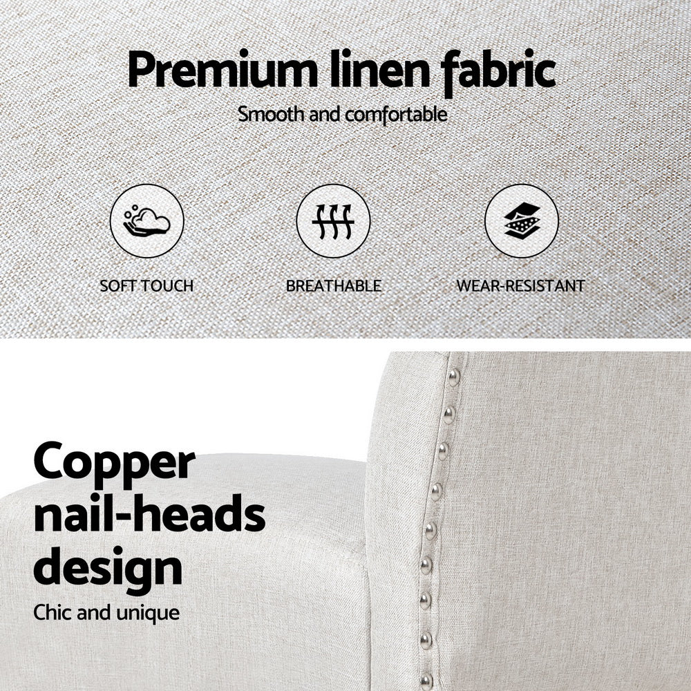 Nothing says elegance quite like an Barstool from Artiss. The tufted button barstools upholstered in neutral, soft linen fabric add a touch of warmth to any stylish living space. The copper nail head trim design adds a unique metallic accent to your décor. The chairs are comprised of a sturdy wooden structure, dense and comfortable padding, sinuous spring support and solid rubberwood legs for a stable, secure chair. A high backrest and built-in footrest keep you comfortable and relaxed while anti-slip floor pads protect your guests from slipping and your floors from scrapes and scratches. Looking for a new way to lighten up your kitchen or living area? Look no further than the Barstool set from Artiss.