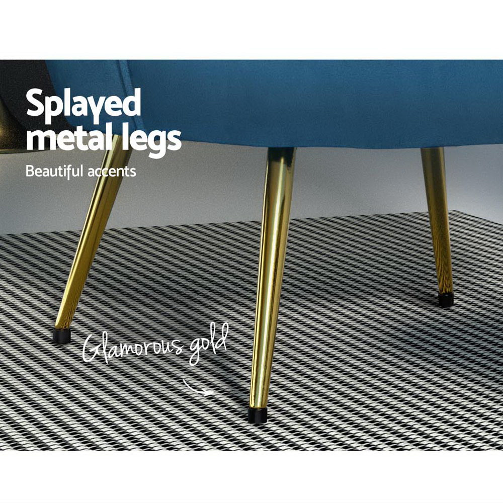 Iconic design. Timeless appeal. Our Artiss Armchair is the epitome of trendsetting style designed for the bold and passionate. With its thick padding of high resilience foam and velvet fabric upholstery, the armchair is perfect as a reading chair or a favourite relaxation seat. The vintage-style scallop shell back wraps around and hugs your body to provide perfect support and comfort. The splayed metal legs in glamorous gold give the armchair loads of character as well as providing a very stable base. Not least, the workmanship is meticulous with the fluid corners and sturdy wooden frame. The armchair will blend well with any setting from classic to contemporary and will also soften the flow of rooms with angular furniture and accents.