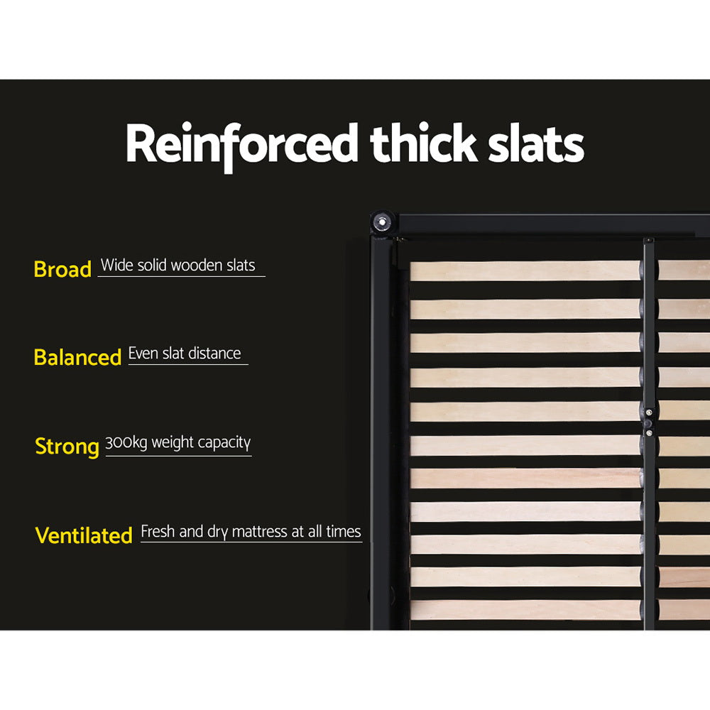 From first glance, our contemporary Artiss Tiyo Gas Lift Bed Frame looks phenomenal. The premium PVC leather tufted headboard and sides all exude fine craftsmanship and luxury. But there is more. Lift up the bed base and you will find ample storage space under the wooden arched slat base. The gas lift system and hand strap enable you to effortlessly lift the bed to store items you wish to hide away until a later date. The wooden arched slat base is also designed to flex appropriately so that it can better distribute the weight exerted on it and stop disturbances in the night if your partner likes to move about. Enjoy your wonderful sleep in more ways than one with our innovative Tiyo Gas Lift Bed Frame, it is definitely brains and beauty!