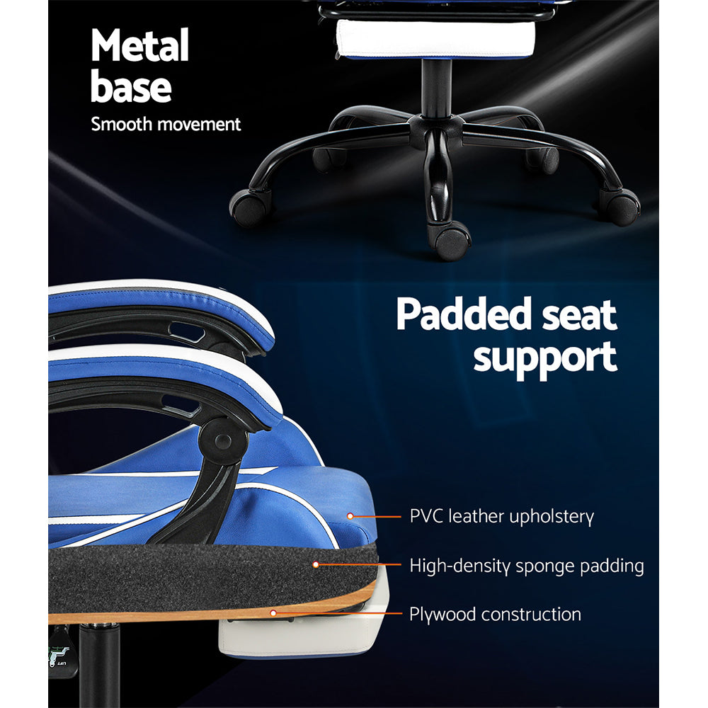 Gaming Office Chair Executive Leather Chair Footrest - Blue White