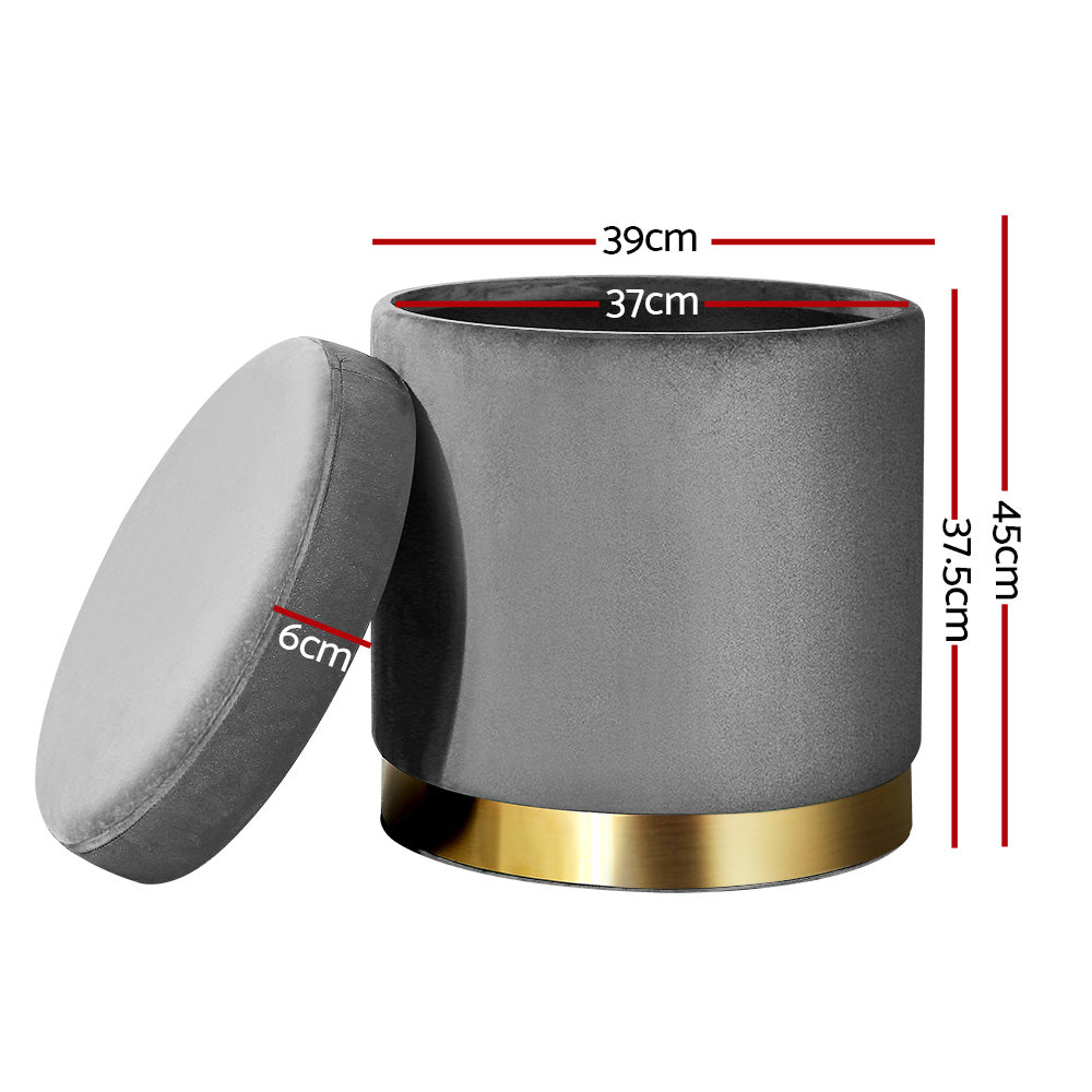 Ottoman Storage Foot Stool Round Velvet - Charcoal