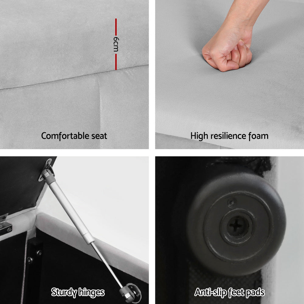 Storage Ottoman Blanket Box Velvet 103cm - Grey
