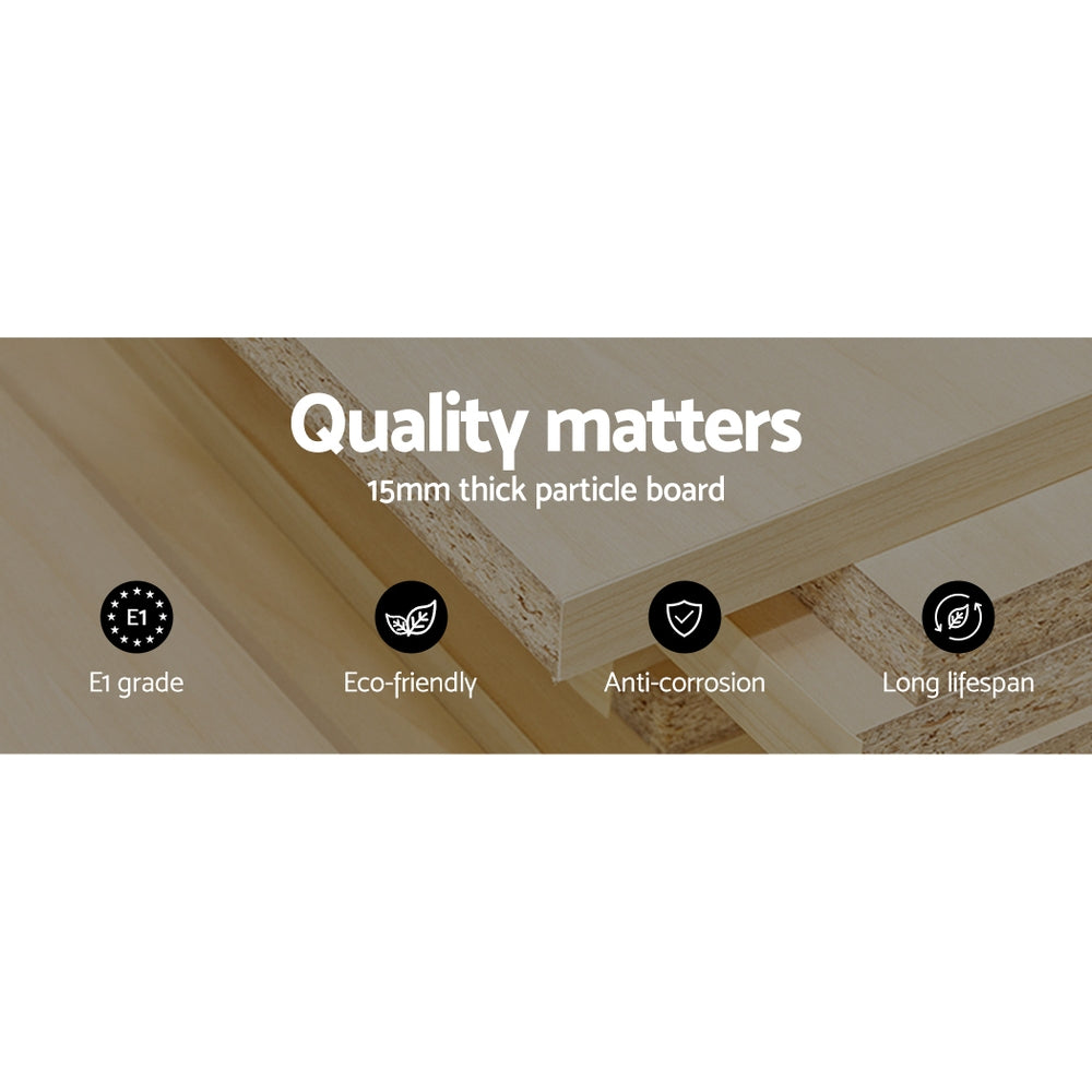 Looking for a stylish and practical entertainment unit to complete your living room or home theatre setup? Our Artiss entertainment unit won't disappoint you. With its wide, low-profile design, and convenient storage, this entertainment unit will enhance your living space and keep it clutter-free. It boasts a unique dual-tone design, which makes it a stylish addition to any living room. The entertainment unit features solid and durable construction. It's constructed from 15mm thick particle board with UV high gloss on the front and melamine finish, which makes it quite sturdy and ensures longlasting use. Our entertainment unit has three spacious drawers, which offers ample space to store other living room essentials such as magazines, remote control, and other stuff. The drawers come with smooth metal runners, which makes for hassle-free operation. It also has two tempered glass shelves to store all your entertainment paraphernalia in an organised manner. Furthermore, this entertainment unit features anti-slip base. It guarantees ultimate stability and prevents the entertainment unit stable from slipping or moving. Bring this uniquely designed entertainment unit for your home today.