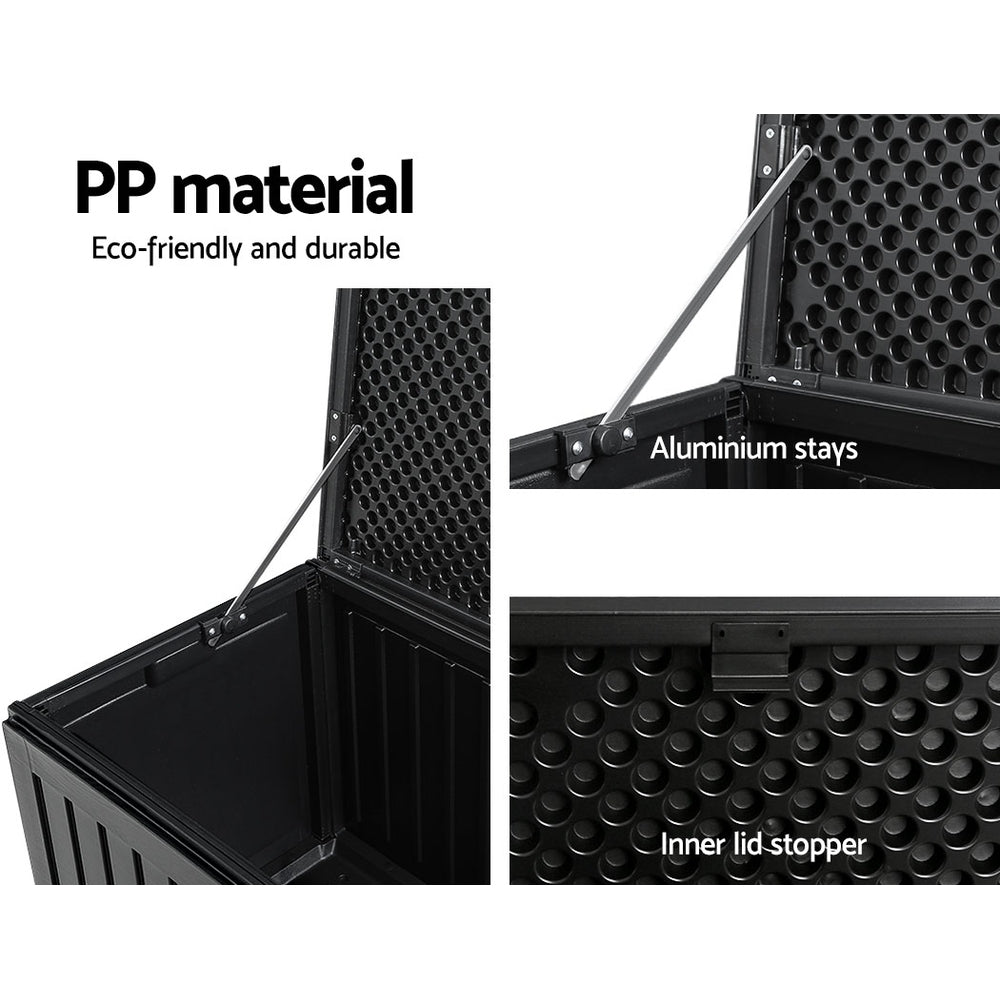 Outdoor Storage Box 270L Container Lockable Garden Bench Tool Shed Black