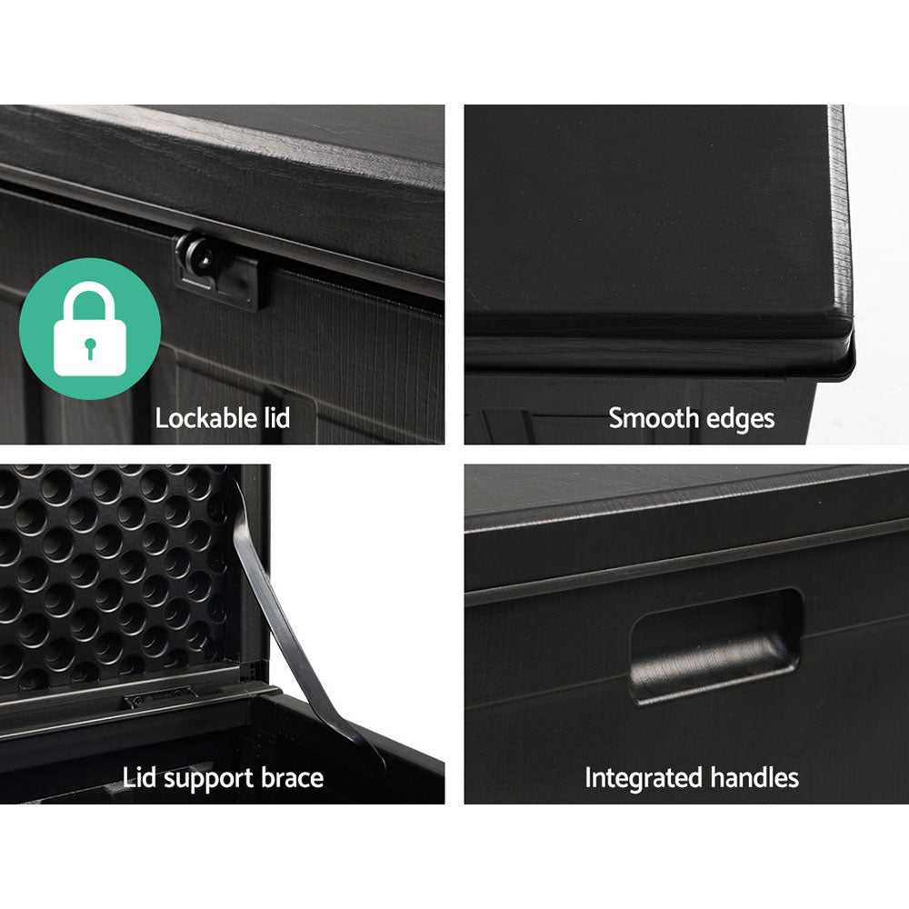 Outdoor Storage Box 80L Container Lockable Garden Toy Tool Shed Black