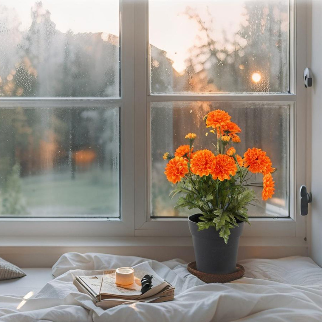 Potted Artificial Orange 'Mum' Chrysanthemum 26cm