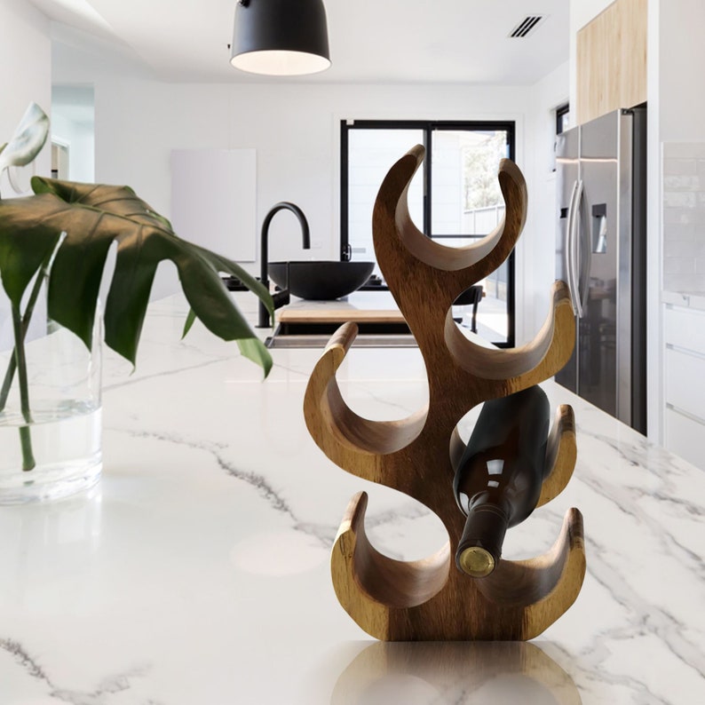 Whimsical wine storage! These monkey pod wood (Acacia) wine racks bring a sense of fun and artistic expression to your wine bar.